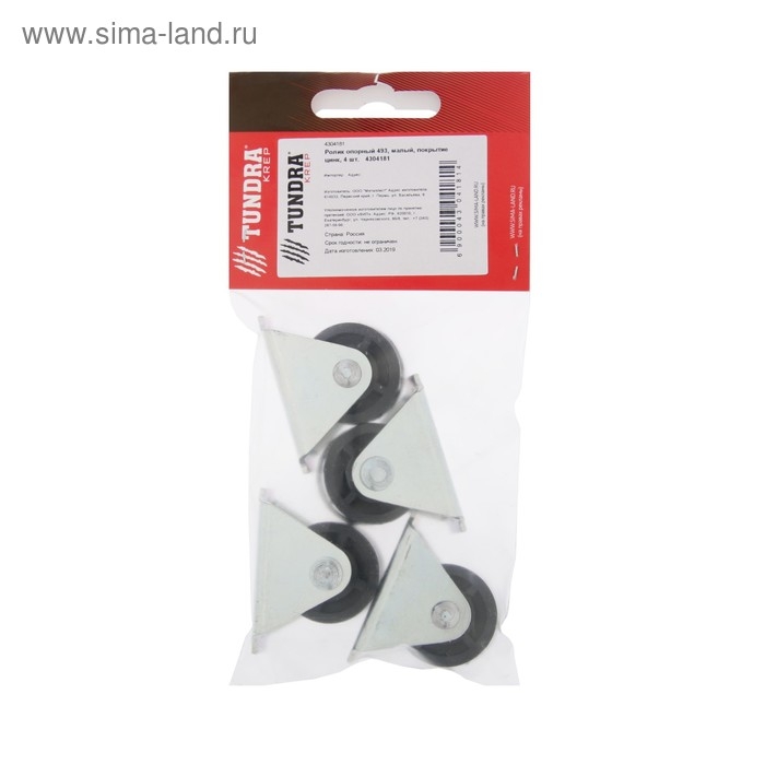 Ролик опорный ТУНДРА 493, малый, покрытие цинк, 4 шт.