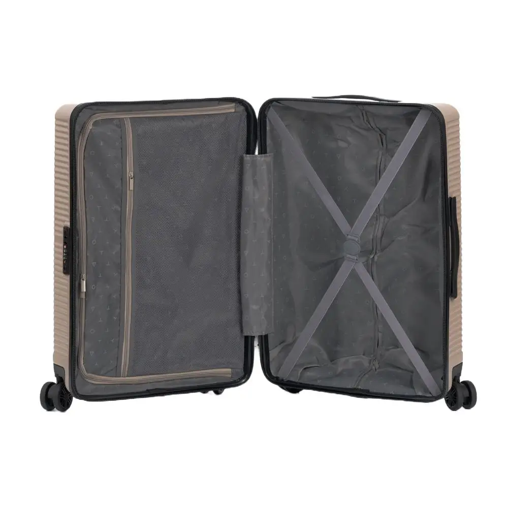 Легкий и надежный чемодан Elton для путешественников и профессионалов, которые ценят стиль и функциональность. Корпус выполнен из АБС-пластика, устойчивого к царапинам и повреждениям от ударов. Внутри есть эластичные ремни для фиксации багажа и сетчатый карман на молнии. Четыре двойных колеса равномерно распределяют вес чемодана, обеспечивая его бесшумное и плавное передвижение в аэропорту или на вокзале.