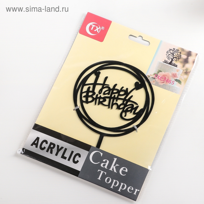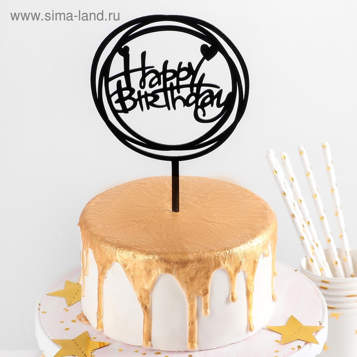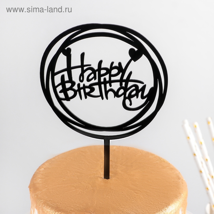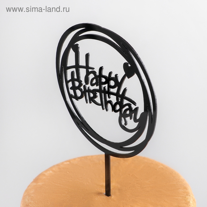 Топпер для торта «Happy Birthday», 16,5×15 см, цвет чёрный