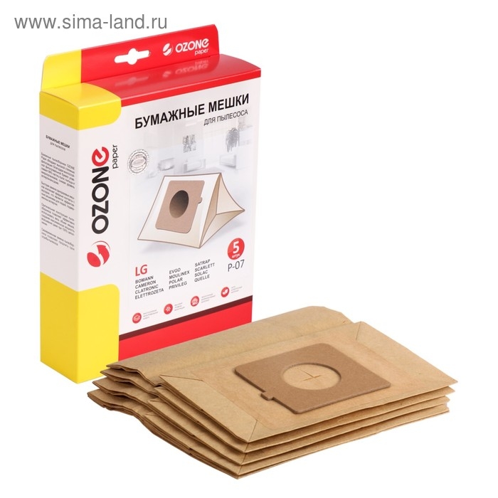 Мешки-пылесборники P-07 Ozone бумажные для пылесоса, 5 шт