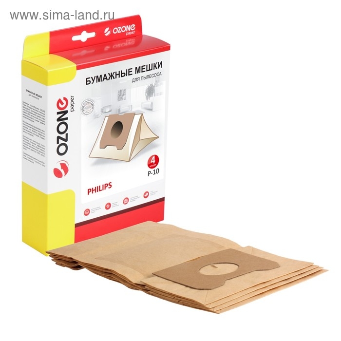 Мешки-пылесборники P-10 Ozone бумажные для пылесоса, 4 шт