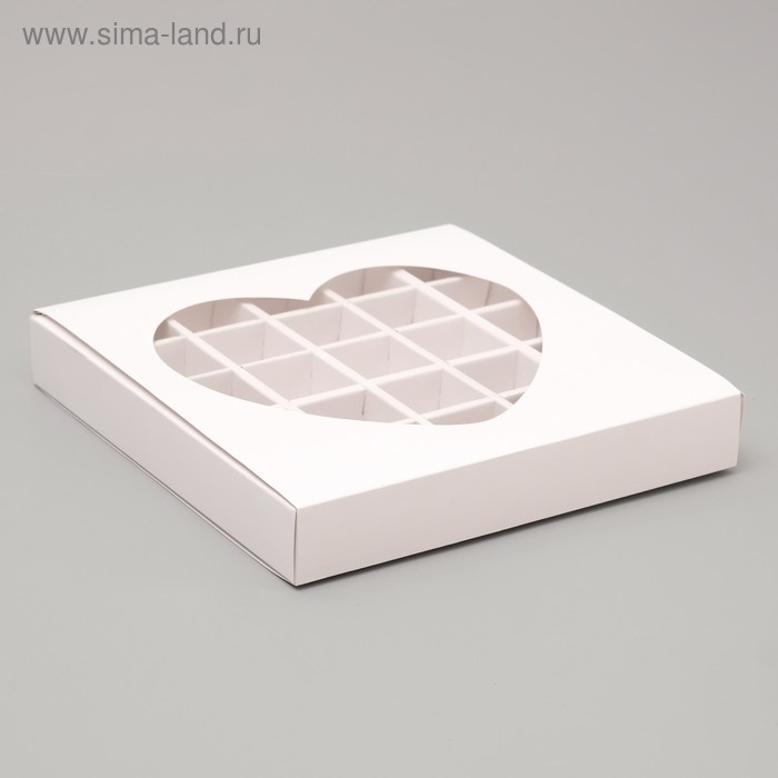 Кондитерская коробка для конфет 25 шт "Сердце", белая, 22 х 22 х 3,5 см