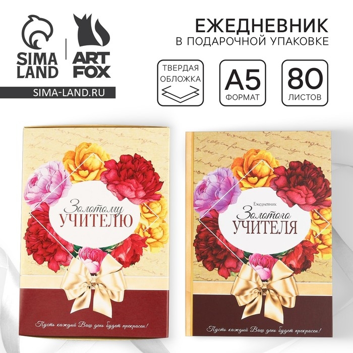 Ежедневник в подарочной коробке «Золотому учителю», формат А5, 80 листов, твердая обложка