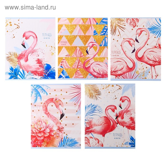 Тетрадь 48 листов в клетку Calligrata "Фламинго", обложка мелованный картон, УФ-лак, блок офсет, МИКС