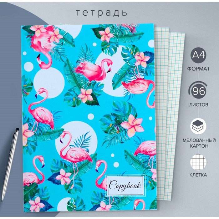 Тетрадь А4, 96 листов в клетку "Фламинго", обложка мелованный картон, блок офсет