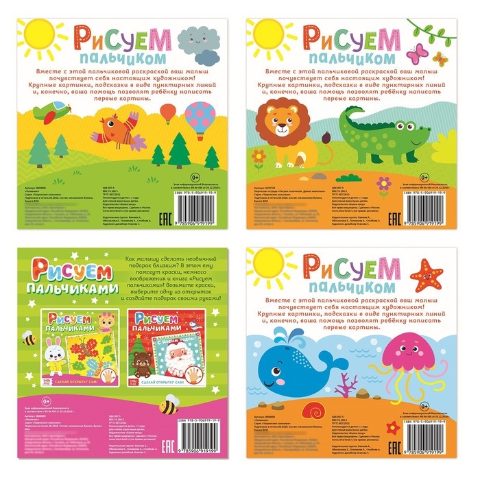 Раскраски набор «Рисуем пальчиками», 4 шт. по 16 стр.