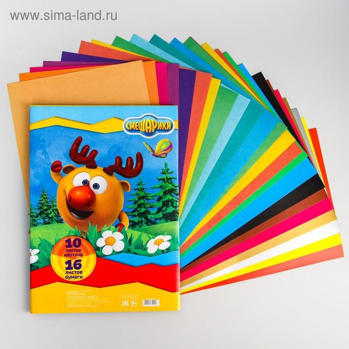 Набор "Смешарики" А4: 10л цветного одностороннего картона + 16л цветной двусторонней бумаги