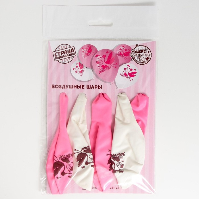 Воздушный шар латексный 12" «Это девочка», 5 шт.