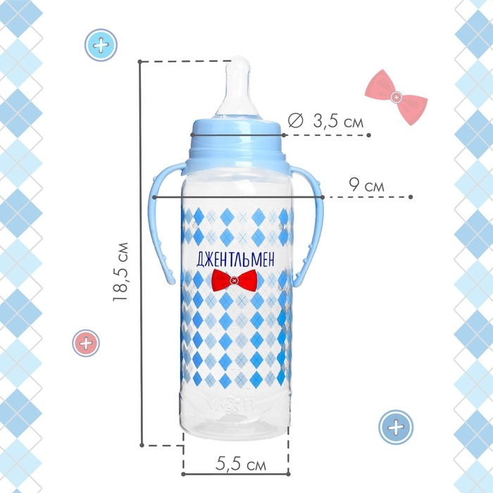 Подарочный детский набор «Джентльмен»: бутылочки для кормления 150 и 250 мл, прямые, от 0 мес., цвет голубой