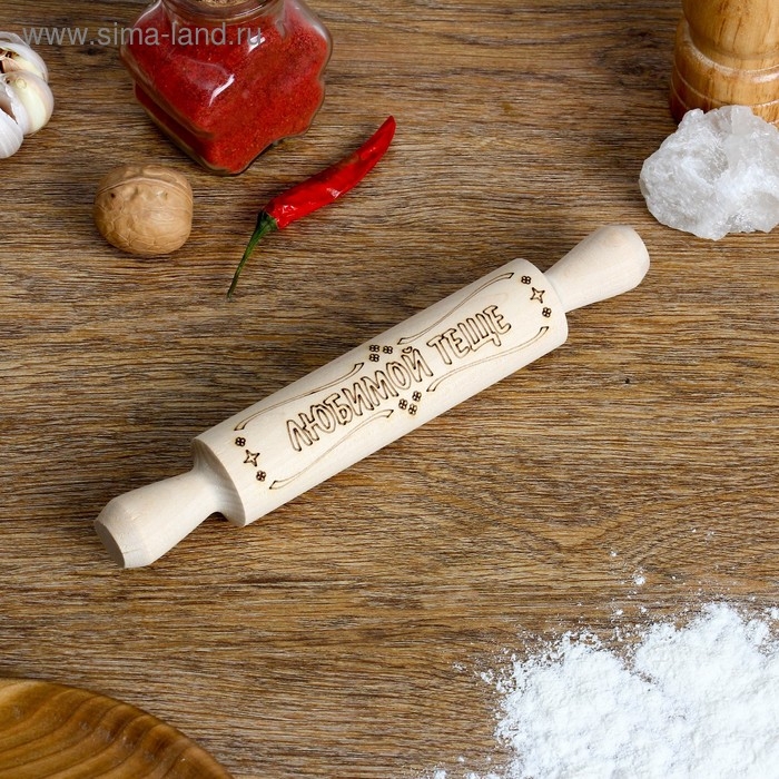 Скалка с надписью "Любимой тёще", берёза, 21,5×3,5 см