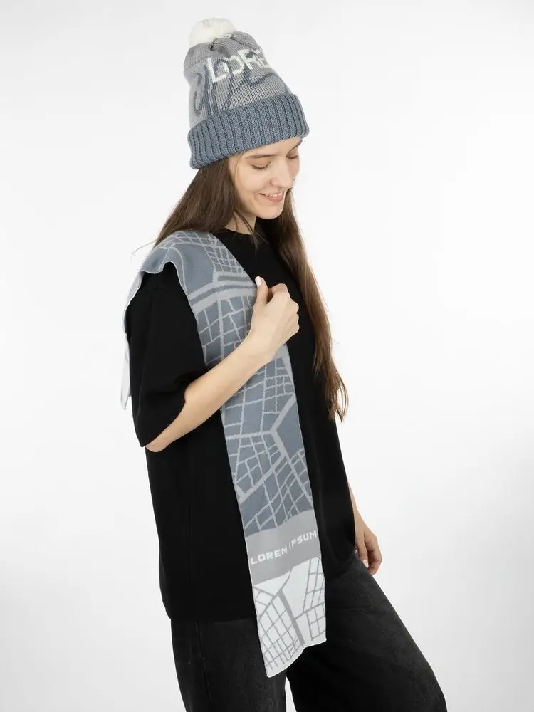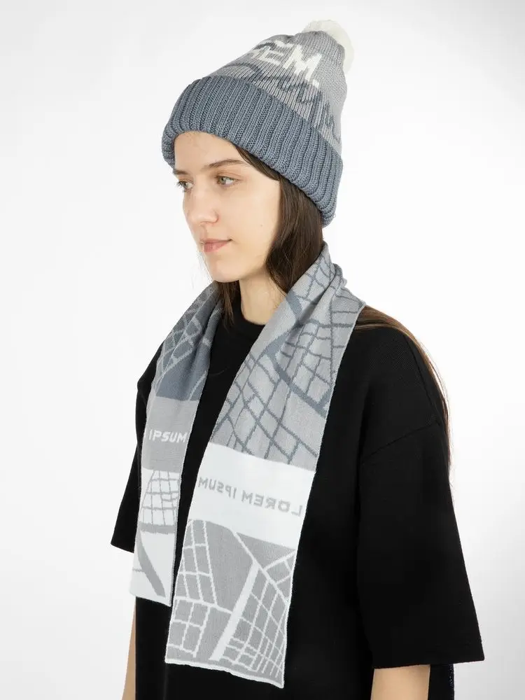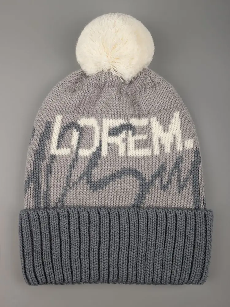 Модель: шапка с жаккардовым узором в 2-3 цвета и отворотом в 1 цвет, помпон 8 см, крупная петля. Шапка некроеная, с макушкой на стяге, которая всегда будет однотонной. Узор максимально простой и графичный, без сложных мелких деталей.