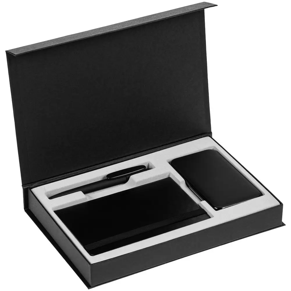 Коробка Silk с ложементом под ежедневник 10x16 см, аккумулятор и ручку, черная