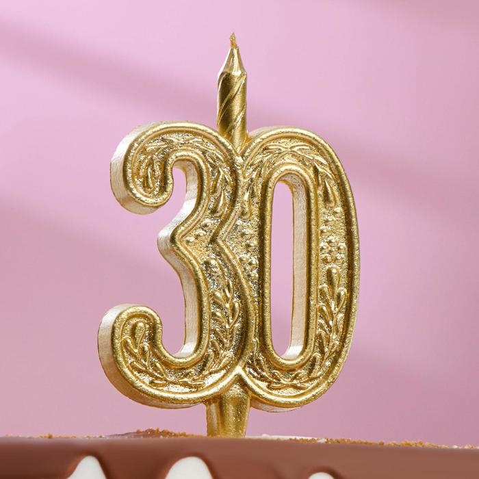 Свеча для торта цифра "Юбилейная" 30, золотая, 9,7 см,