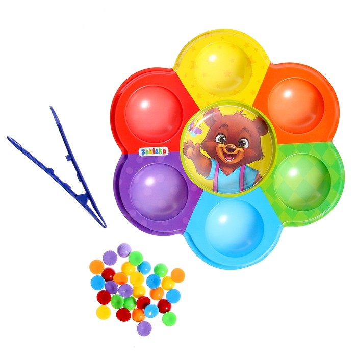 Сортер «Мишкины конфетки», по методике Монтессори, 6 цветов, с пинцетом, 3+