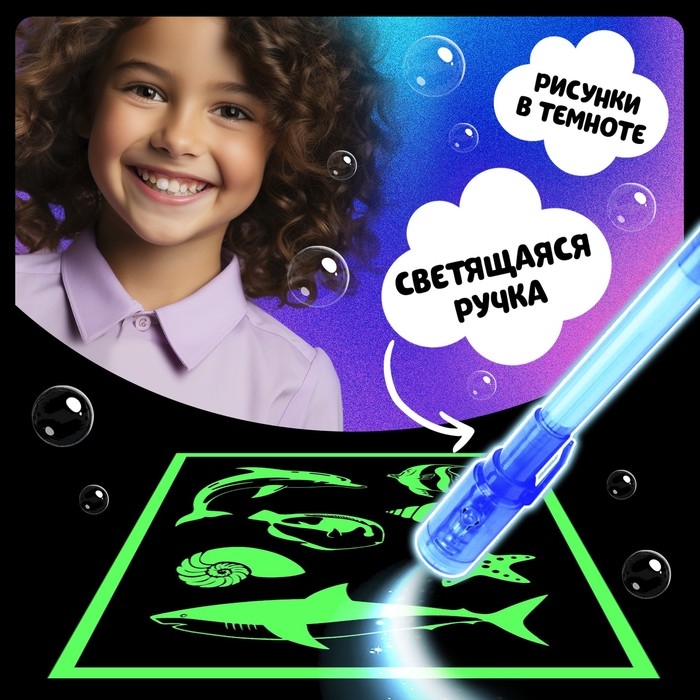 Активити-книжка с рисунками светом «Морские животные», ручка с фонариком и невидимыми чернилами