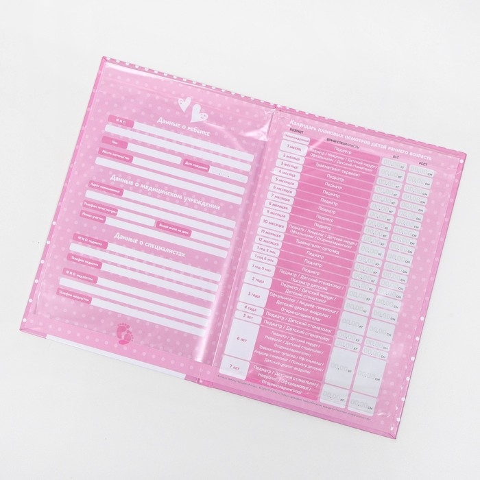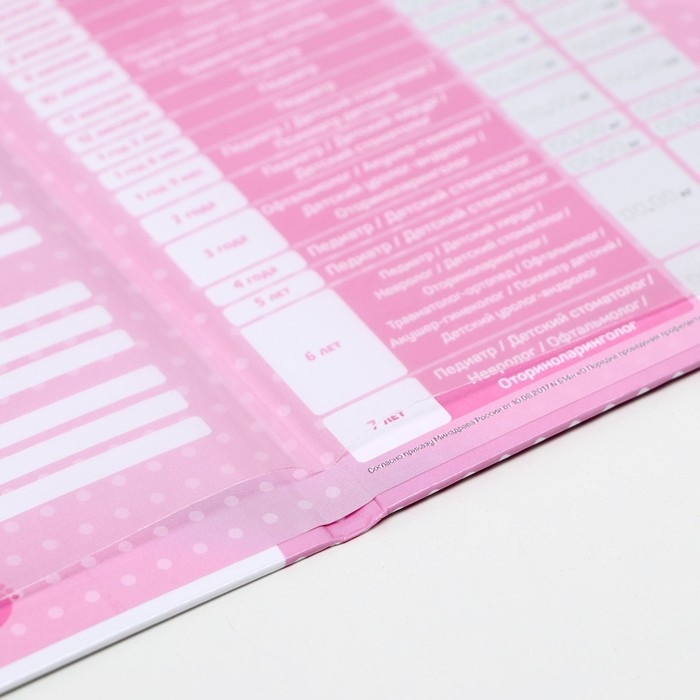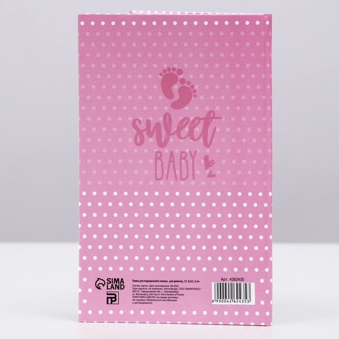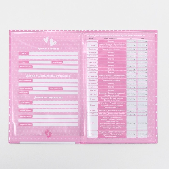 Изделие размера 17,5 х 11,3 см имеет удобный файл внутри (17,5 х 22,6 см), который бережно сохранит первый в жизни документ ребёнка от повреждений. Папка выполнена из плотного картона толщиной 1,25 мм, покрытого пленкой.