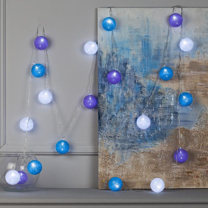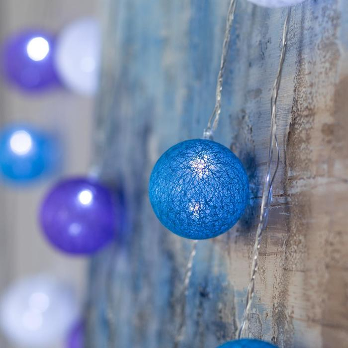 Гирлянда «Нить» 5 м с насадками «Клубки черничные», IP20, прозрачная нить, 20 LED, свечение белое, 220 В