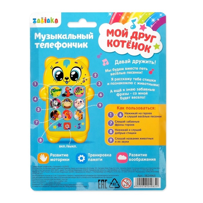 Развивающий музыкальный телефончик «Мой друг котёнок», световые эффекты