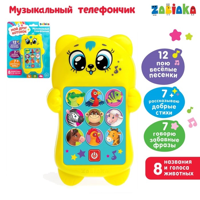 - Игрушка воспроизводит 12 весёлых песенок.