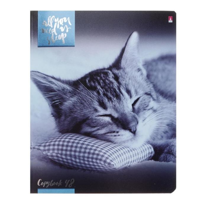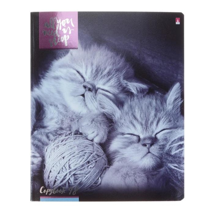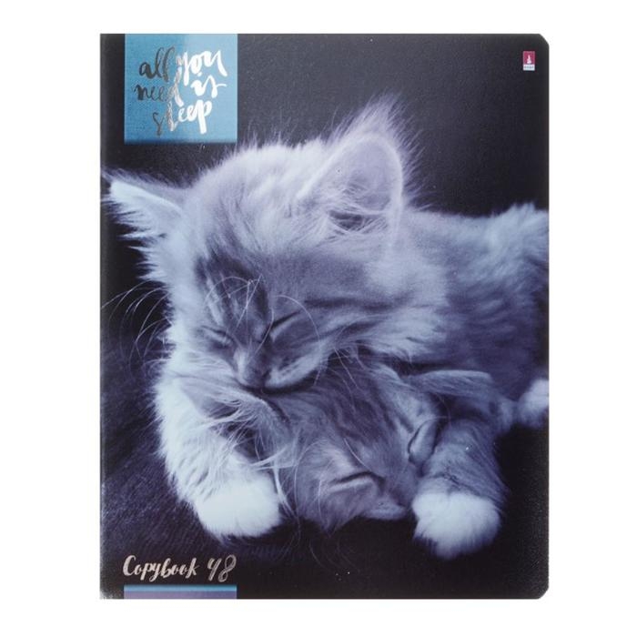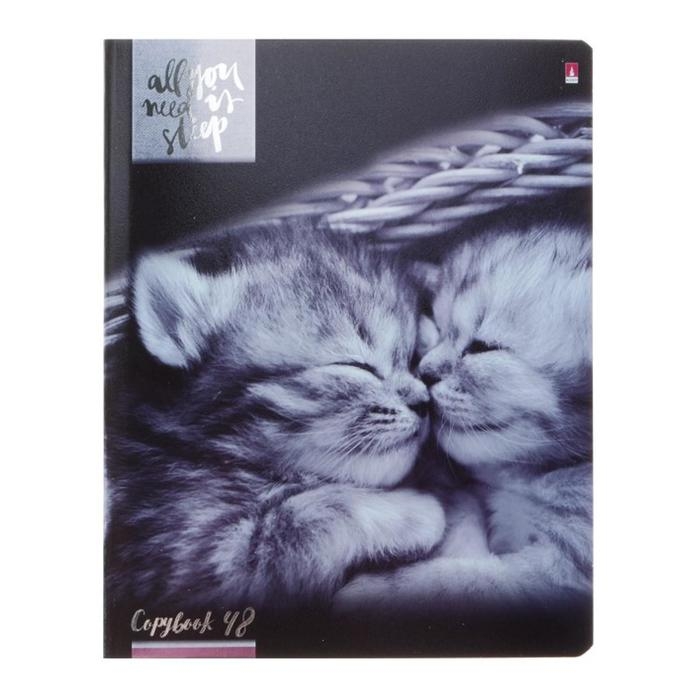 Тетрадь 48 листов в клетку "Котята мур-мур", обложка мелованный картон, гибридный лак, фольга, МИКС