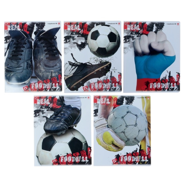 Тетрадь 48 листов в клетку "Настоящий футбол", обложка мелованный картон, гибридный лак, МИКС