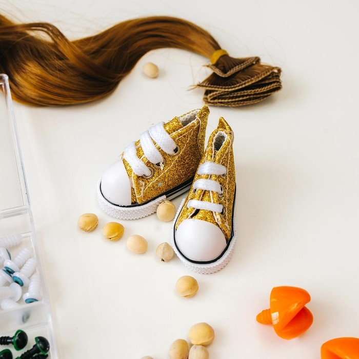 Кеды для кукол «Блёстки», длина подошвы: 5 см, цвет золотой