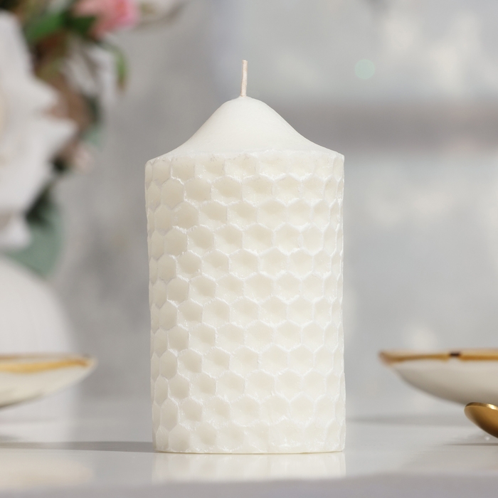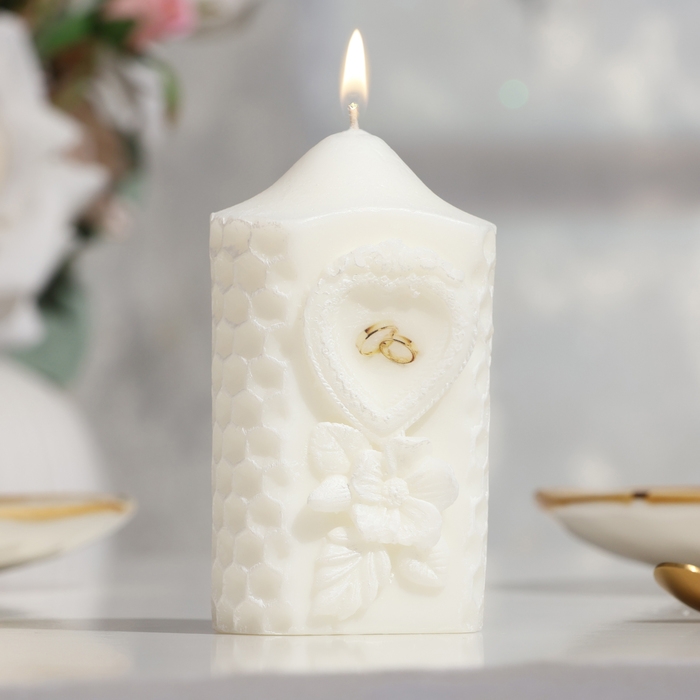 Свеча-цилиндр свадебная "Камея", белая, 6×11 см
