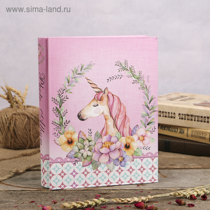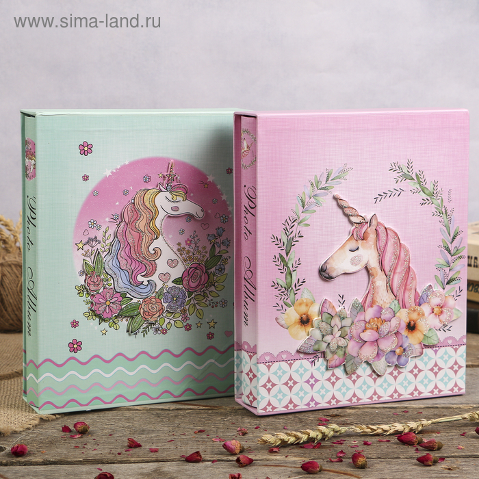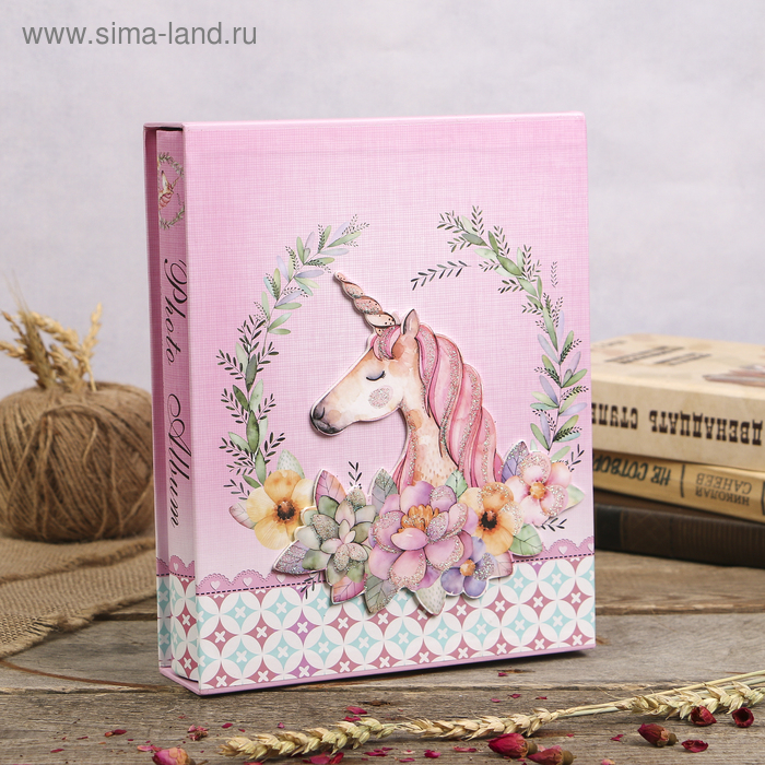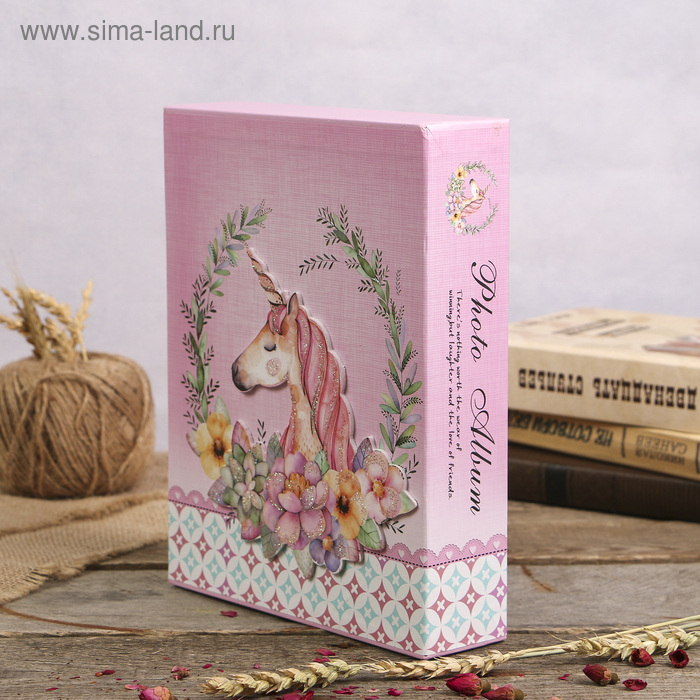 Фотоальбом на 200 фото 10х15 см "Единорог в цветах" в коробке МИКС 26х20,5х5 см