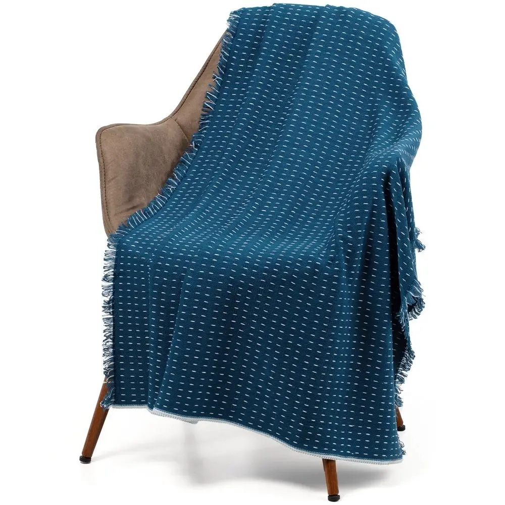 Плед из мягкого акрила Fringy особенный и неповторимый. Он выигрышно выделяется необычным узором — контрастными с основным полотном стежками, дополненными элегантной и аккуратной бахромой. Словно соединив в себе искусство вязания с шитьем, плед гармонично впишется в дизайн современной гостиной или спальни.