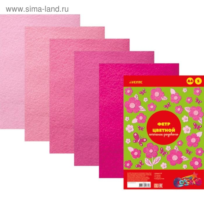 Фетр цветной мягкий A4 deVENTE. "Оттенки розового" 5 цветов, 5 листов, толщина 2 мм