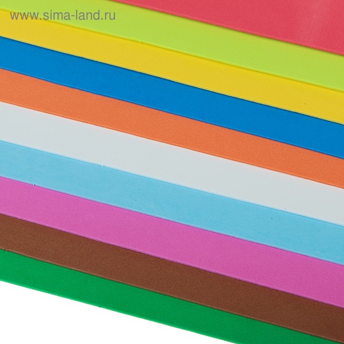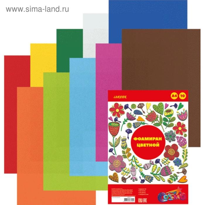 Фоамиран цветной A4 deVENTE 10 цветов, 10 листов, толщина 2 мм, пластиковый пакет с европодвесом
