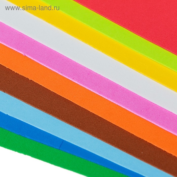 Фоамиран цветной A4 deVENTE 10 цветов, 10 листов, толщина 1 мм, пластиковый пакет с европодвесом.