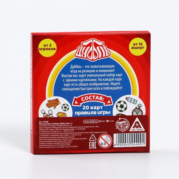 Настольная игра на реакцию и внимание «Дуббль. Спорт», 20 карт, 5+