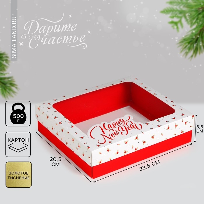 Коробка подарочная новогодняя складная «Happy New Year», 23.5 х 20.5 х 5.5 см, Новый год
