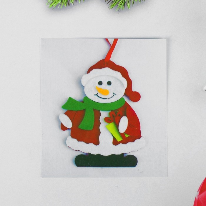 Набор для творчества - создай ёлочное украшение из фетра «Снеговик с подарком»