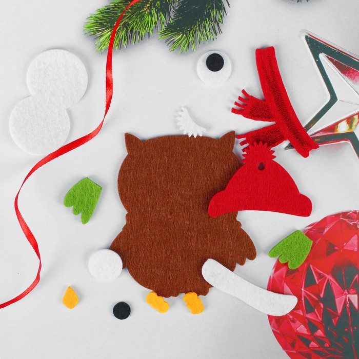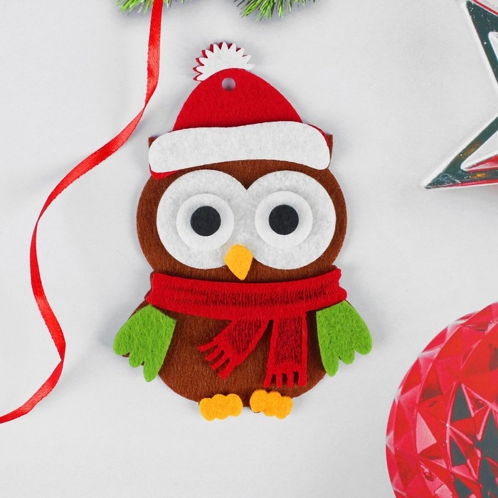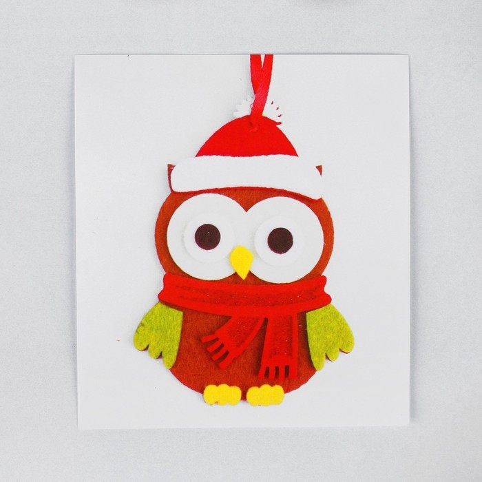 Набор для творчества - создай ёлочное украшение из фетра «Сова в новогодней шапочке»