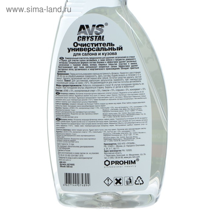 Очиститель универсальный для салона и кузова AVS, триггер, 500 мл, AVK-651