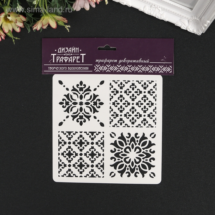 Трафарет пластик "Плитки Азулежу 4 рисунка" 15х15 см