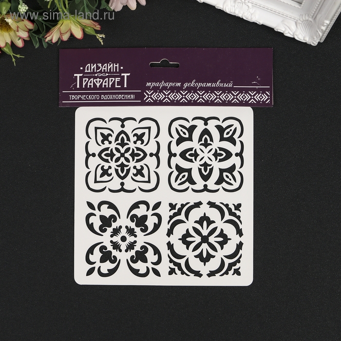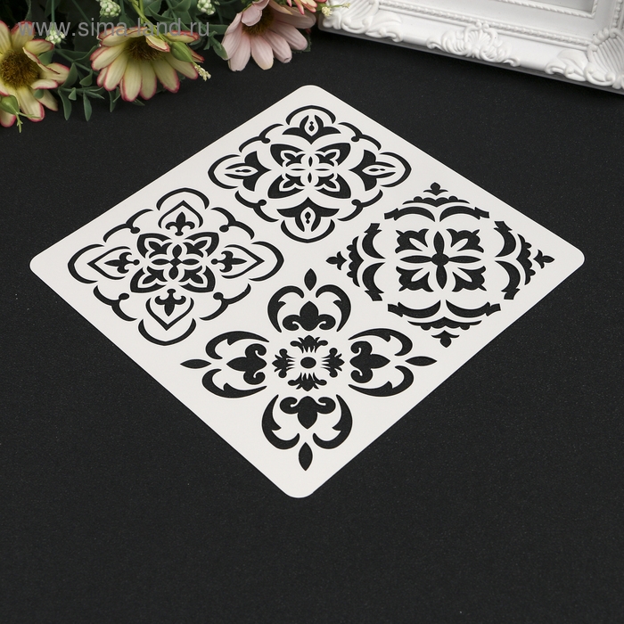 Трафарет пластик "Плитки Азулежу 4 рисунка" 15х15 см