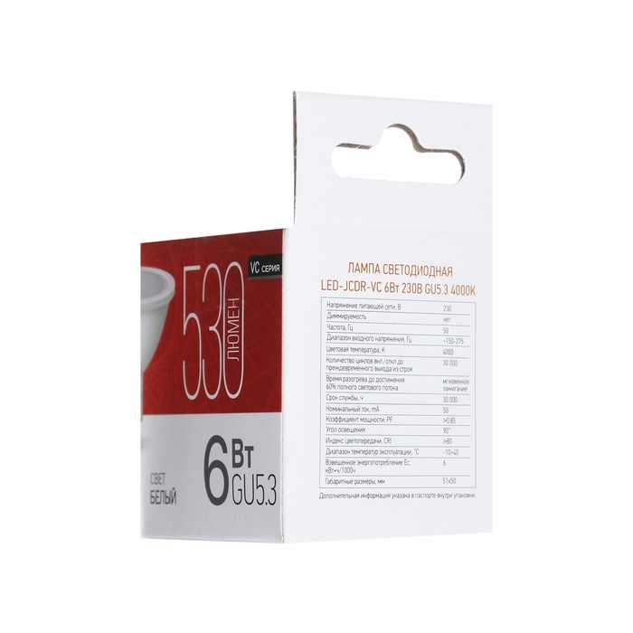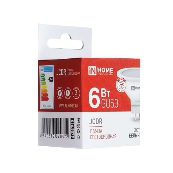 Лампа светодиодная IN HOME, MR16, GU5.3, 6 Вт, 525 Лм, 4000 К, дневной белый