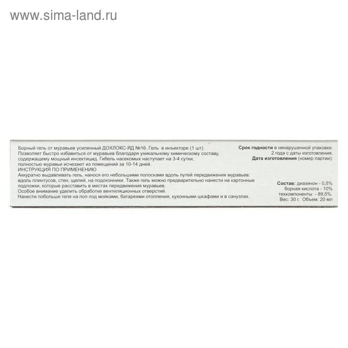 - Эффективная формула: Гель содержит борную кислоту, которая является мощным средством против муравьев. Он быстро проникает в организм насекомых и приводит к их уничтожению.