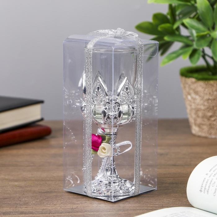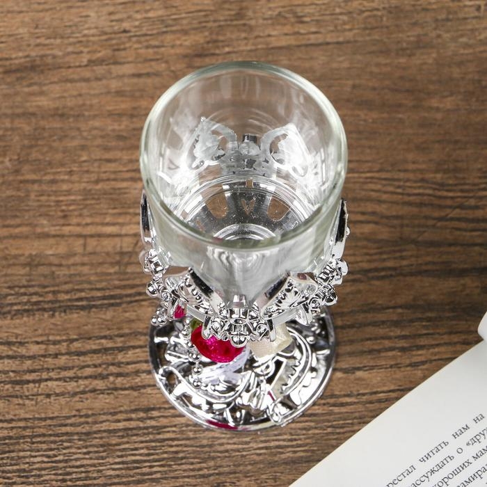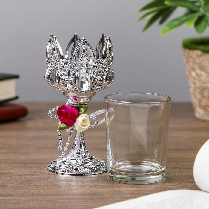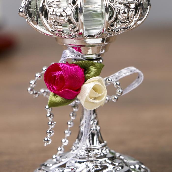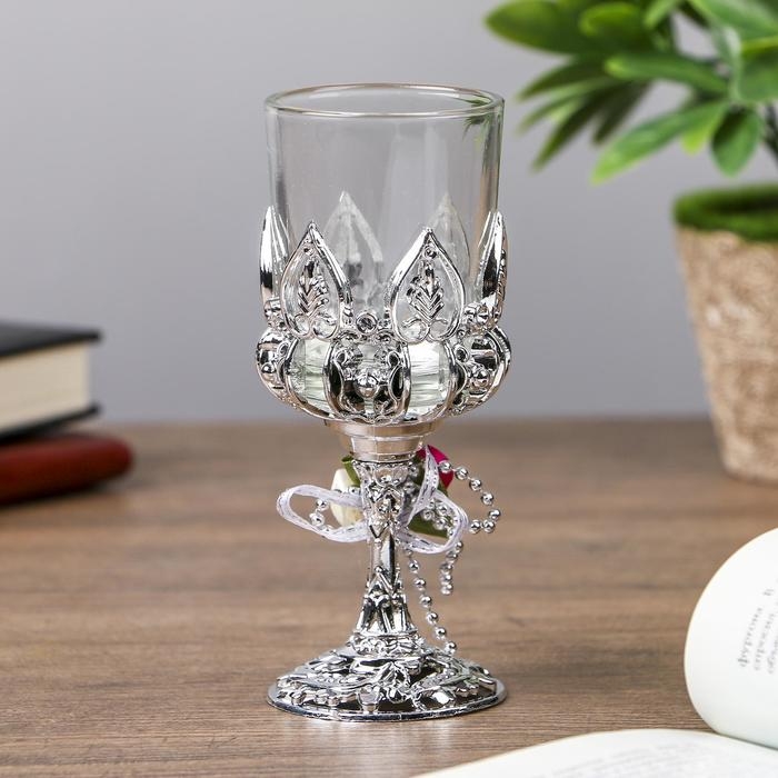 Подсвечник пластик, стекло на 1 свечу "Розочки" бокал на ножке серебро 13х6х6 см