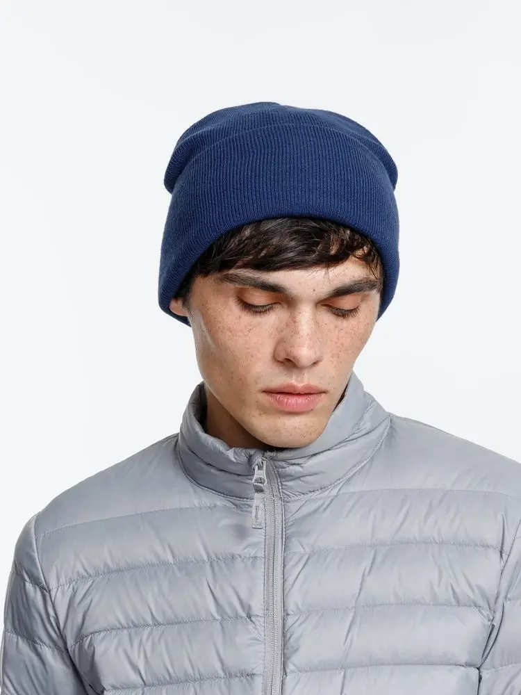 Двухслойная шапка из акриловой пряжи с регулируемым отворотом 7–10 см.