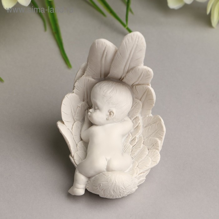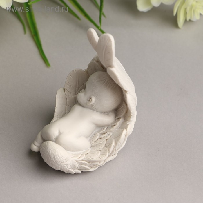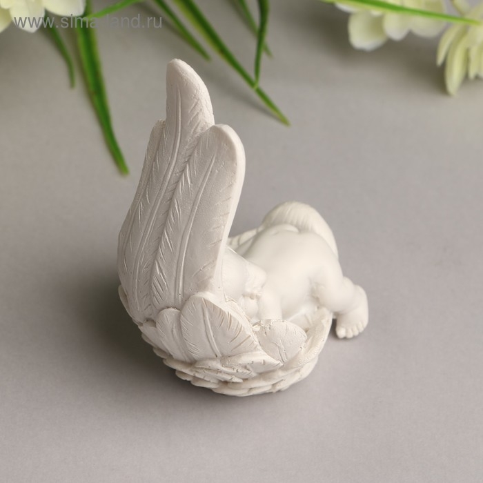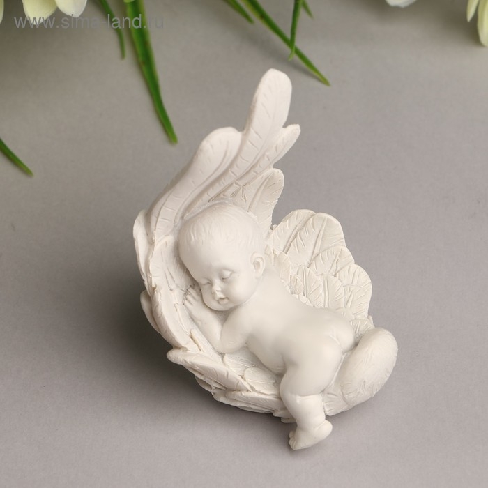 Сувенир полистоун "Малыш спящий в крыле" белый 8,7х6х5,5 см