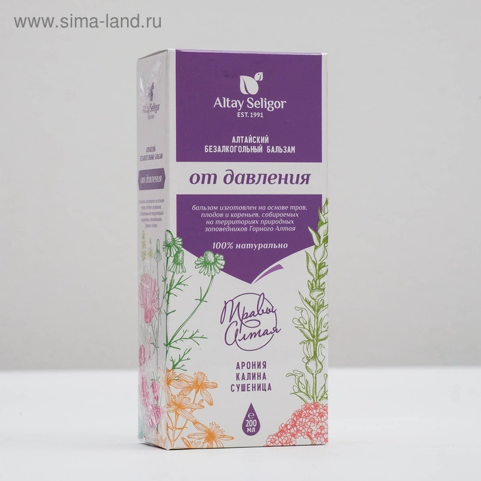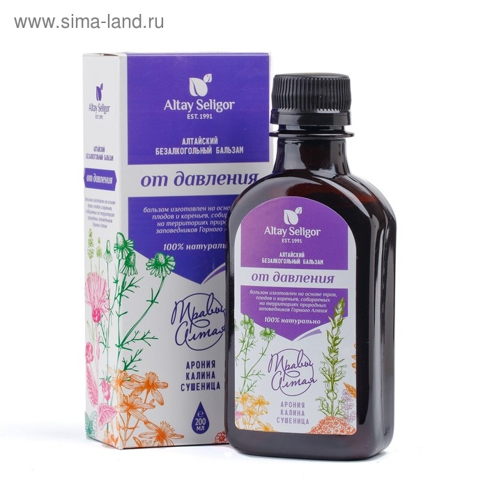 Алтайский бальзам на травах рекомендуется для нормализации давления. Средство производит мягкий гипотензивный эффект. Арония, калина, сушеница — активные действующие травы в бальзаме. Не содержит алкоголя, можно применять каждый день.