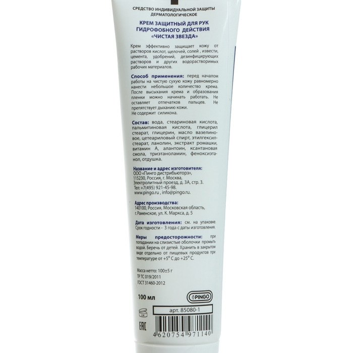 Крем защитный для рук гидрофобного действия Pingo Чистая звезда, туба 100 мл