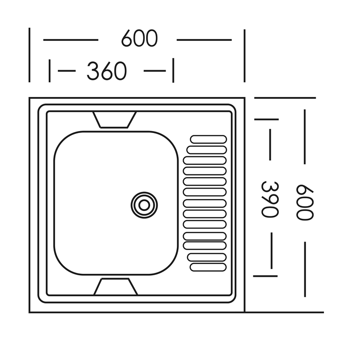 Мойка кухонная "Владикс", накладная, без сифона, 60х60 см, левая, нержавеющая сталь 0.4 мм