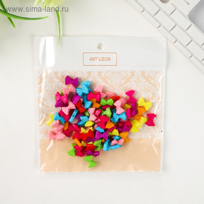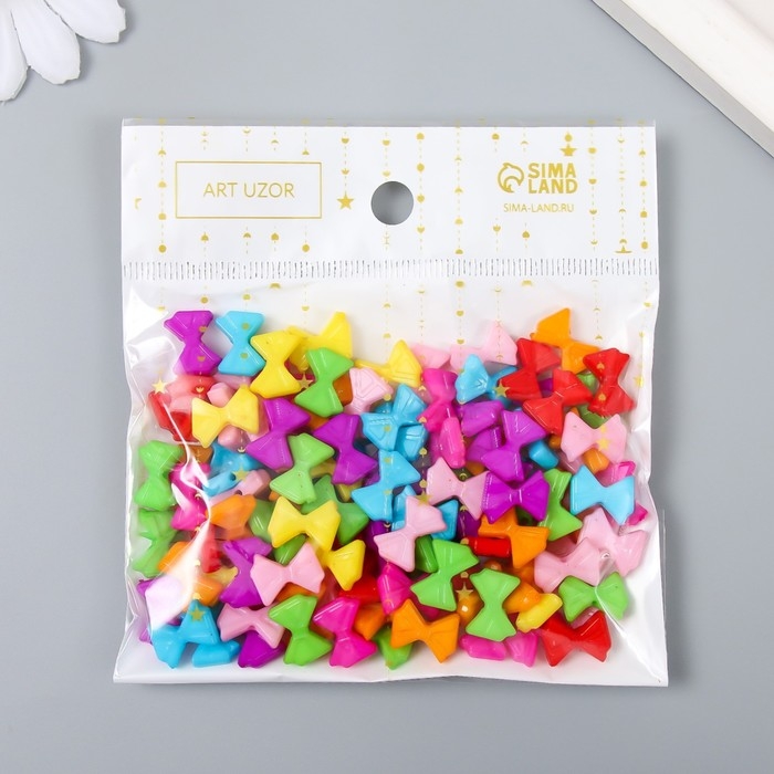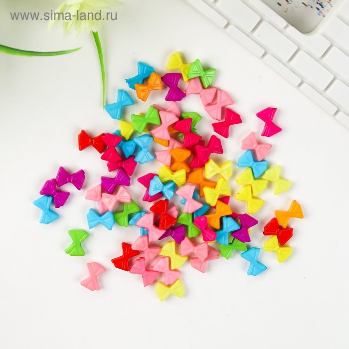Бусины для творчества пластик "Яркие бантики" набор 120 шт 0,2х1х0,7 см