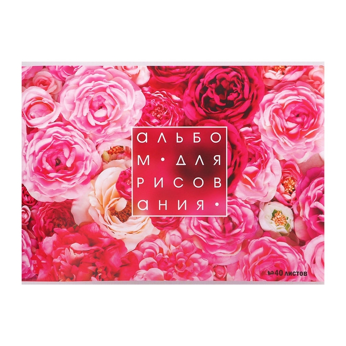 Альбом для рисования А4, 40 листов на скрепке "Розы", обложка мелованный картон, блок 100 г/м²