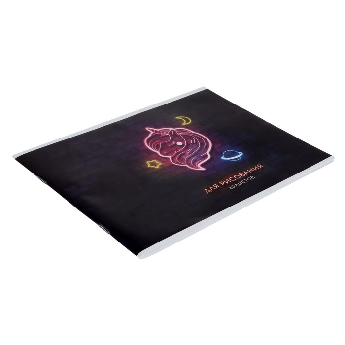 Альбом для рисования А4, 40 листов на скрепке "Единорог. Неон", обложка мелованный картон, блок 100 г/м²
